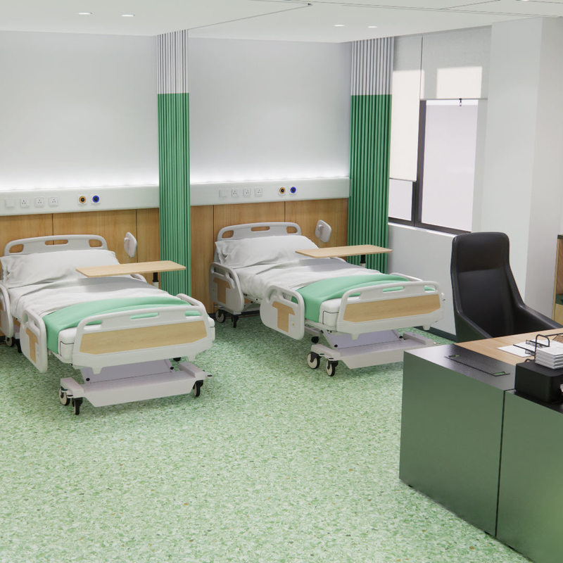 ✔️ Safety & Comfort: Slip-resistant textures and noise-reducing properties enhance patient recovery, while cushioned support reduces staff fatigue.